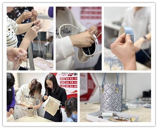 在这场沉浸式的手作体验中,大家暂时放下工作的忙碌,全身心投入到包包的制作中,将对生活的热爱、对自己的期许全都融入到这一针一线的作品中。随着时间的流逝,原本零散的材料逐渐变成了独一无二的DIY包包。