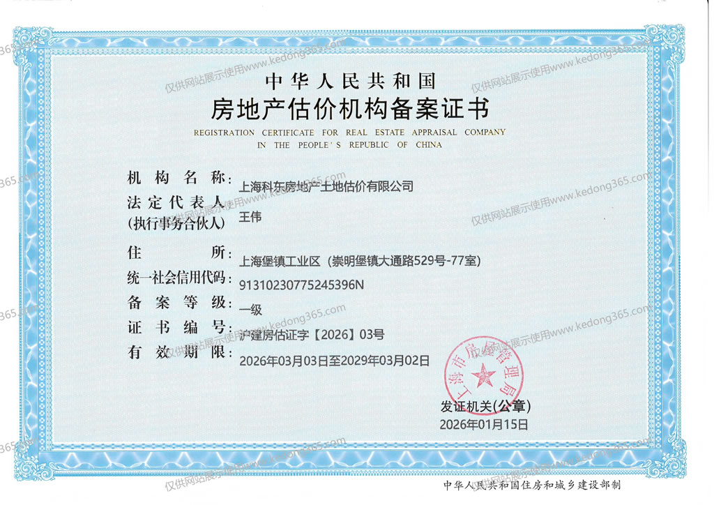 上海市住宅物业服务价格评估机构备案证书