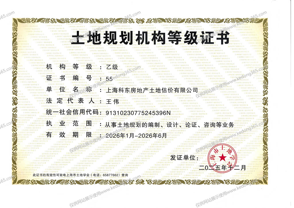 土地规划机构等级证书