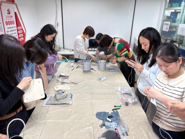 活动现场暖意融融、氛围浓厚,各类手工材料与工具齐备。大家穿针引线,认真缝制装饰,相互交流、彼此协助,现场讨论声与笑声交织。大家每一个专注的眼神,每一次灵巧的穿针,无不彰显着女性的温柔与匠心。